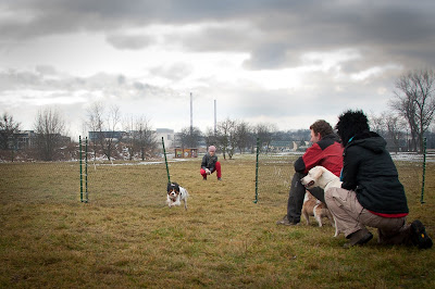 22.01. crossy. Pogoda zrobiła się idiotyczna, jest trochę śniegu, generalnie mokro i zimno, co prawda było słońce, ale na kilkanaście sekund. No a wiadomo - praca mojego psa jest dość mocno zależna od pogody, od faktu, czy w szanowną tricolorową doopkę jest ciepło czy zimno :) Mam nadzieję, że uda nam się zwalczyć ten problem i że Li będzie chciała pracować i aportować nawet, gdy będzie cała mokra. Są postępy, bo jak już 100 razy pisałam i napiszę jeszcze raz ona w ogóle nie ruszała zabawek w taką pogodę, nie było mowy o szarpaniu i aporcie, a teraz elegancko się szarpie dokładnie tak jak ona, aport co prawda jeszcze nie jest idealny (mówię tu o piłce tenisowej, bo tylko takich używa się we flyballu) ale ostatnio 2 razy prawie mi przyniosła. Prawie, bo puściła w środku drogi powrotnej.